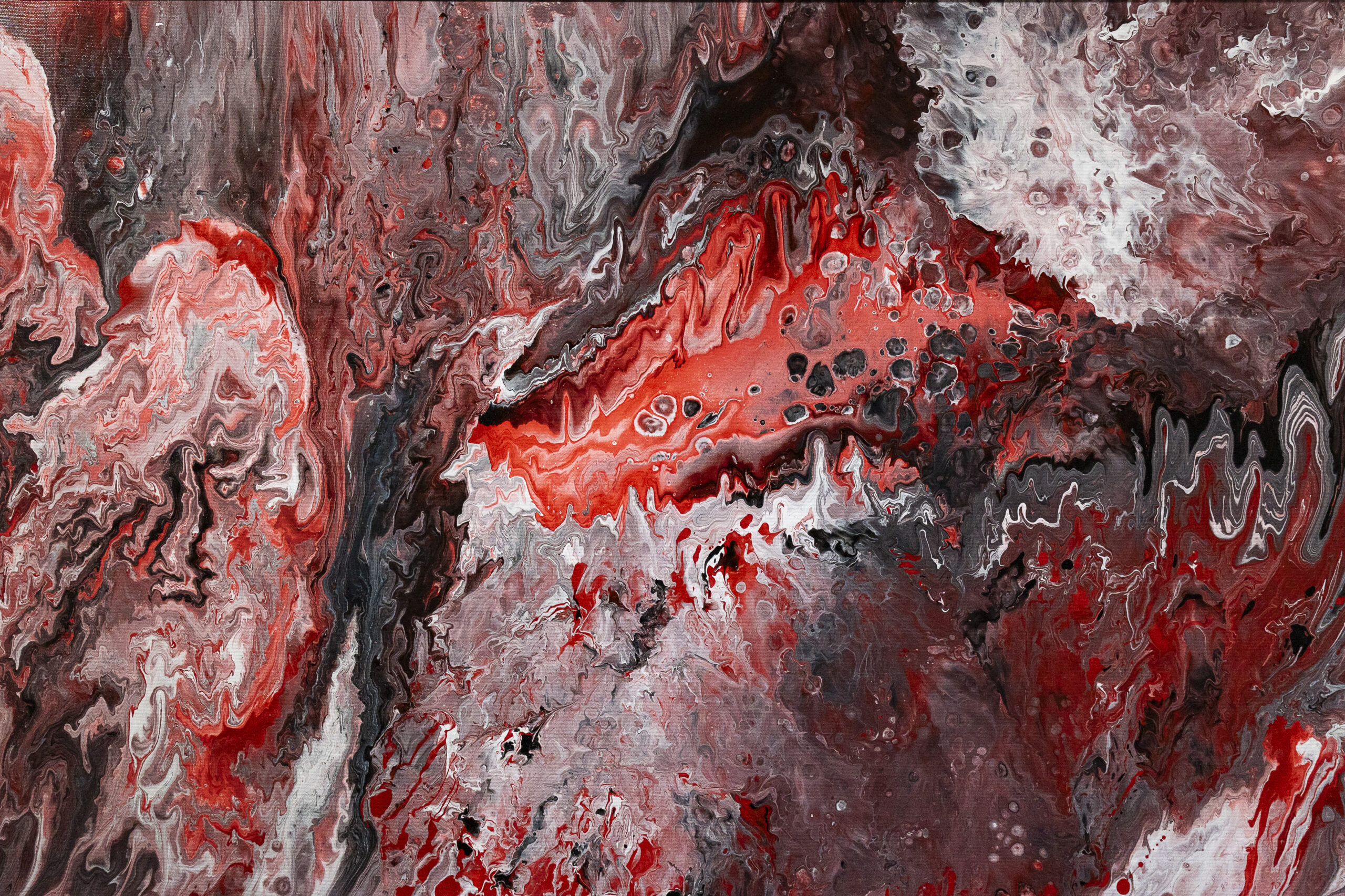 Obraz " Pożoga II " Abstrakcyjna kompozycja inspirowana dramatycznymi pożarami w Australii. Dynamiczne kontrasty czerwieni, czerni i bieli symbolizują niszczycielską siłę ognia, pochłaniającego przyrodę, ale także nadzieję na odrodzenie. Obraz oddaje intensywne emocje i energię żywiołu, będąc jednocześnie refleksją nad kruchością świata naturalnego.
